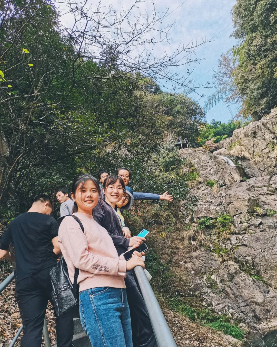 秋游活動第一站-四明山丹山赤水風(fēng)景區(qū),是一處以峽谷景觀為依托,以道教文化、浙東古山村風(fēng)情為文化內(nèi)涵,以絕壁、奇巖、古橋、流溪、飛瀑為特色的風(fēng)景名勝區(qū),道家尊之為第九洞天。區(qū)內(nèi)群峰斗妍,古樹參天、竹木蔽日、溪水潺潺,是人們享受自然山水風(fēng)光、沐浴歷史文化、品味山鄉(xiāng)風(fēng)情、休閑娛樂度假的極佳生態(tài)旅游地。參加賞秋活動的員工相互照顧,相互交流,驚嘆大自然的鬼斧神工,感受秋日大自然的美景和呼吸著新鮮的空氣,心情格外愉快。