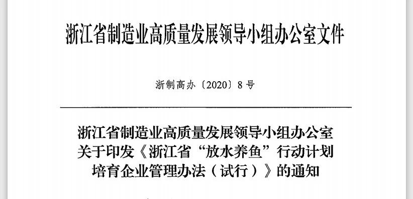 根據(jù)《浙江省“放水養(yǎng)魚”行動(dòng)計(jì)劃》工作要求,重點(diǎn)扶持一批細(xì)分市場有競爭優(yōu)勢、成長性好、具有關(guān)鍵核心技術(shù)的優(yōu)質(zhì)企業(yè),進(jìn)一步鞏固提升浙江省制造業(yè)、民營經(jīng)濟(jì)在全國的領(lǐng)先地位。