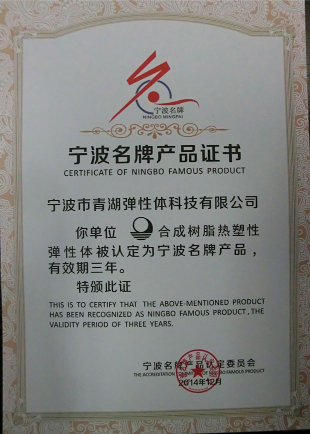 2016年2月26日,羊年春節(jié)剛剛結束,青湖雙喜臨門。由寧波名牌產(chǎn)品認定委員會評選的“2015年寧波名牌”正式出爐,“青湖”牌合成樹脂熱塑性彈性體位列其中。同時,公司也收到了寧波市計量測試學會頒發(fā)的“計量檢測能力確認合格證書”,市計量測試學會對公司在產(chǎn)品質量、經(jīng)營管理、節(jié)能降耗等方面的計量檢測能力給予了肯定。